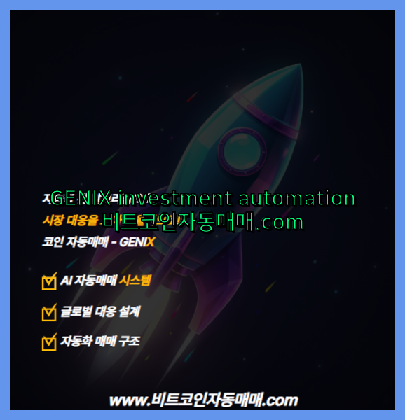 1. 자동으로 거래되는 코인이란 간단히 알아봅시다.코인 자동거래 또는 코인자동수익화 란 AI나 알고리즘 기반 시스템이 사용자를 대신해 암호화폐 시장을 분석하고 조건에 따라 자동으로 매수와 매도를 실행하는 거래 방식입니다. 최근 월스트리트 뿐만 아니라 전 세계적으로 AI를 활용한 코인자동거래가 이루어지고 있습니다. 감정에 의존하지 않고 24시간 시장에 대응할 수 있다는 점에서 최근 AI 코인자동거래 프로그램에 대한 관심이 빠르게 증가하고 있습니다. 2. 지닉스 AI 투자 솔루션 GENIX란?지닉스 AI 투자 솔루션 GENIX는 기존 알봇 ALBOT을 전면 리뉴얼하여 탄생한 AI 기반 코인 코인자동거래 플랫폼입니다. 지닉스 AI 투자 솔루션는 안정적인 수익을 내는 것을 목표로 하고 있으며, 현재 글로벌 코인 코인자동거래 솔루션으로 운영중입니다. 단순 반복 매매가 아닌 시장 흐름과 변동성에 대응하는 지능형 코인자동거래 시스템을 지향합니다. 3. 지닉스 AI 투자 솔루션의 주요 특징 5가지