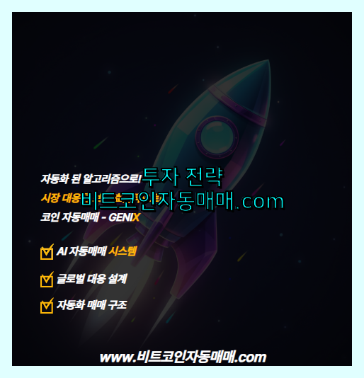1. AI 코인 자동거래 시스템이란 자세히 알아볼까요?코인 자동거래 또는 코인자동수익화 란 AI나 알고리즘 기반 시스템이 사용자를 대신해 암호화폐 시장을 분석하고 조건에 따라 자동으로 매수와 매도를 실행하는 거래 방식입니다. 최근 월스트리트 뿐만 아니라 전 세계적으로 AI를 활용한 자동매매프로그램추천추천가 이루어지고 있습니다. 감정에 의존하지 않고 24시간 시장에 대응할 수 있다는 점에서 최근 AI 자동매매프로그램추천추천 프로그램에 대한 관심이 빠르게 증가하고 있습니다. 2. GENIX 코인 거래 시스템 GENIX란?GENIX 코인 거래 시스템 GENIX는 기존 알봇 ALBOT을 전면 리뉴얼하여 탄생한 AI 기반 코인 자동매매프로그램추천추천 플랫폼입니다. GENIX 코인 거래 시스템는 안정적인 수익을 내는 것을 목표로 하고 있으며, 현재 글로벌 코인 자동매매프로그램추천추천 솔루션으로 운영중입니다. 단순 반복 매매가 아닌 시장 흐름과 변동성에 대응하는 지능형 자동매매프로그램추천추천 시스템을 지향합니다. 3. GENIX 코인 거래 시스템의 주요 특징 5가지