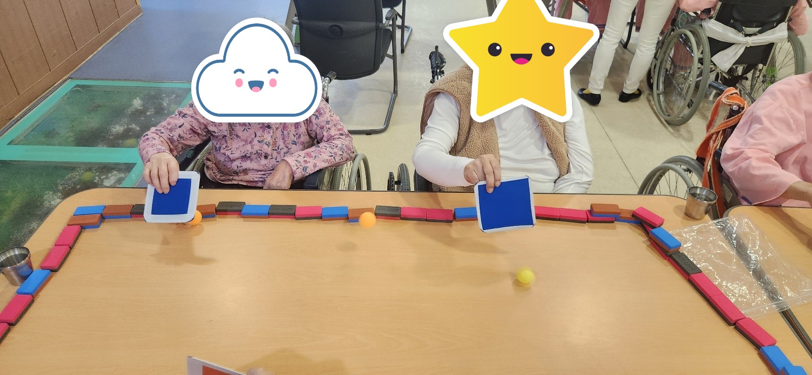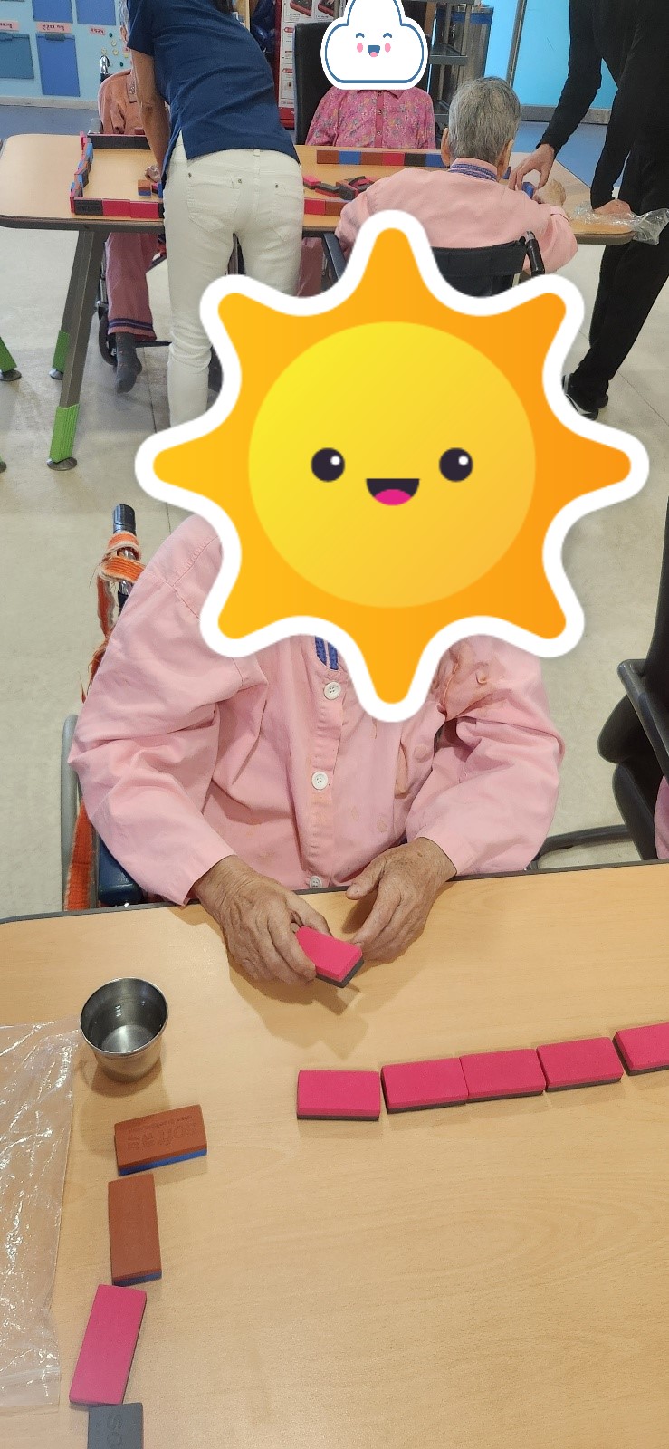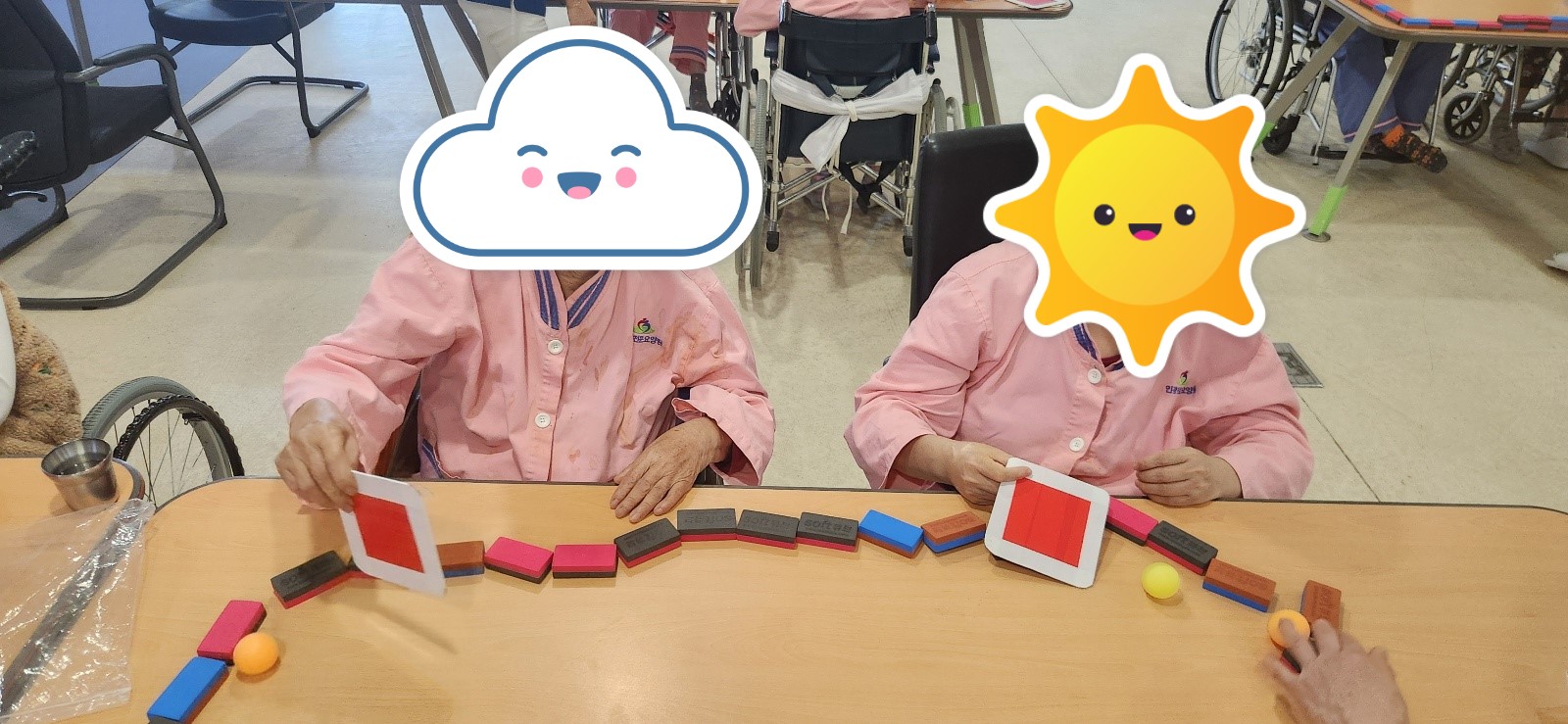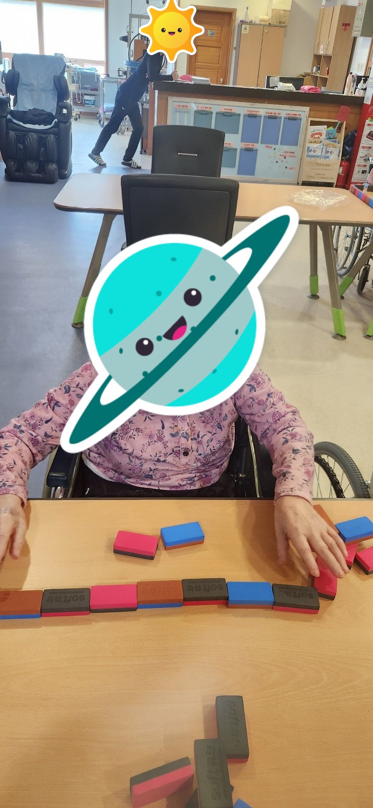 장소 : 요양원 2층 프로그램실 ★ 인원 : 어르신 18명 참석 ★ 내용 : 인지 활동 프로그램 활동 맞춤형 프로그램 강사님이 오셔서 어르신들과 함께 인지 활동프로그램을 진행하였습니다. 간단한 시니어 스트레칭과 음악체조를 한 다음 소프트 큐브를 이용해 도미노 게임도 해보고 블럭쌓기 하듯이 하나하나 엇갈리게 누가누가 높이 쌓나 게임도 해보고 소프트 큐브로 벽을 만들어 그 안에서 공 놀이 게임도 해보았습니다.