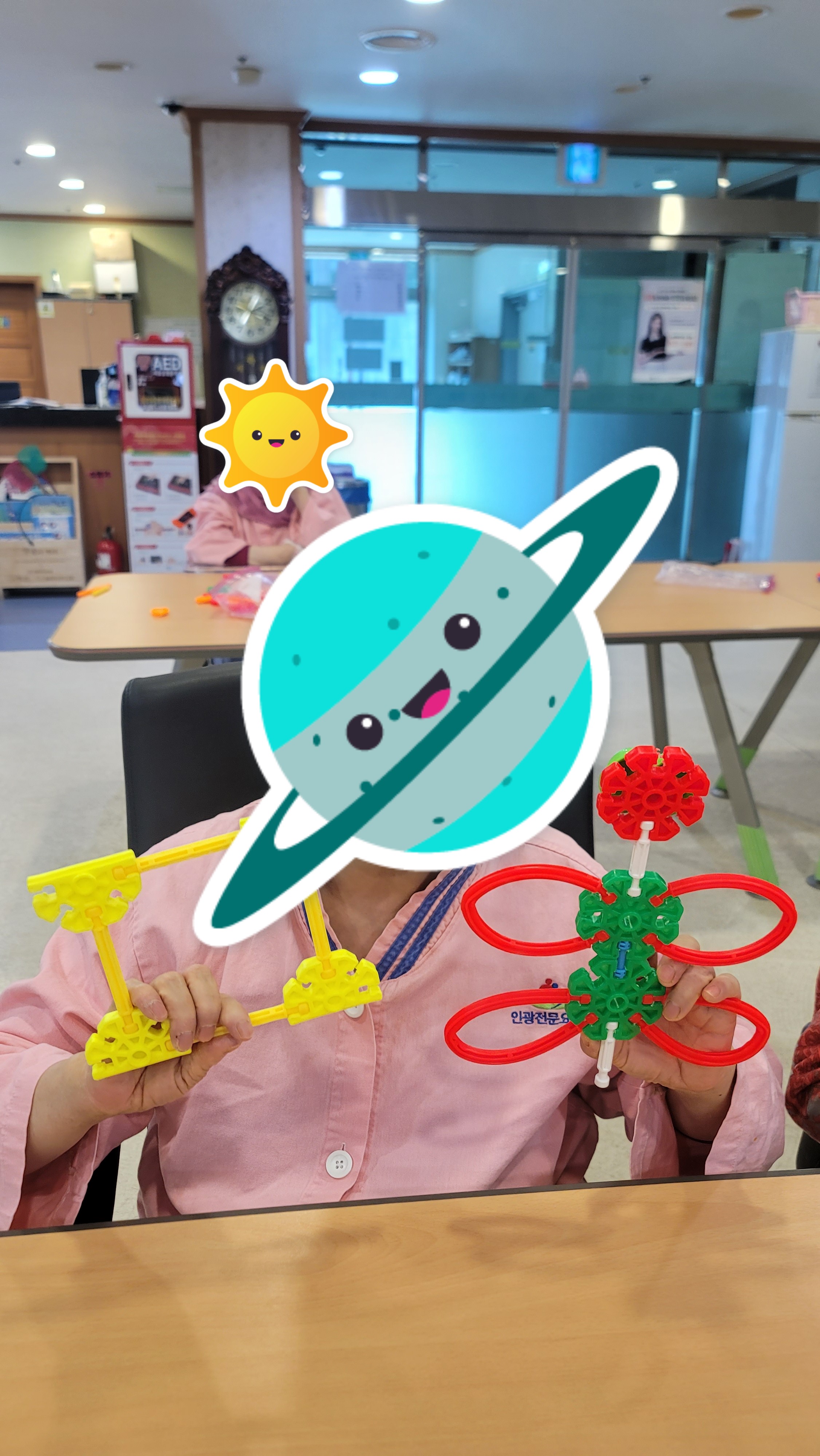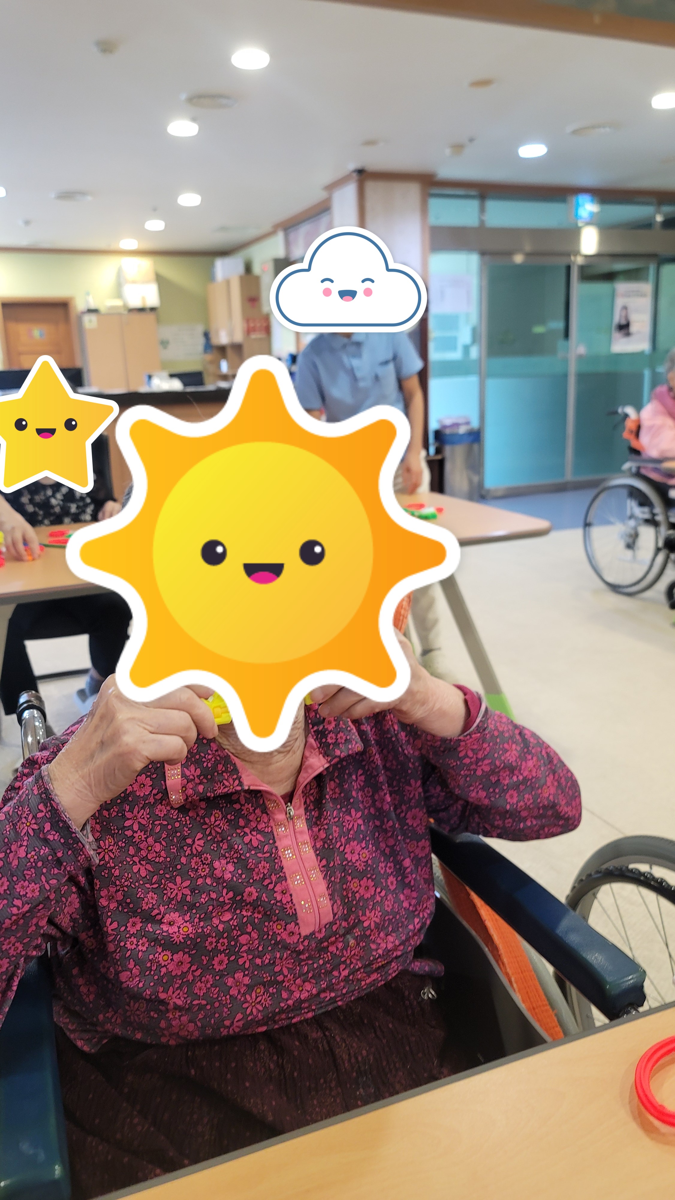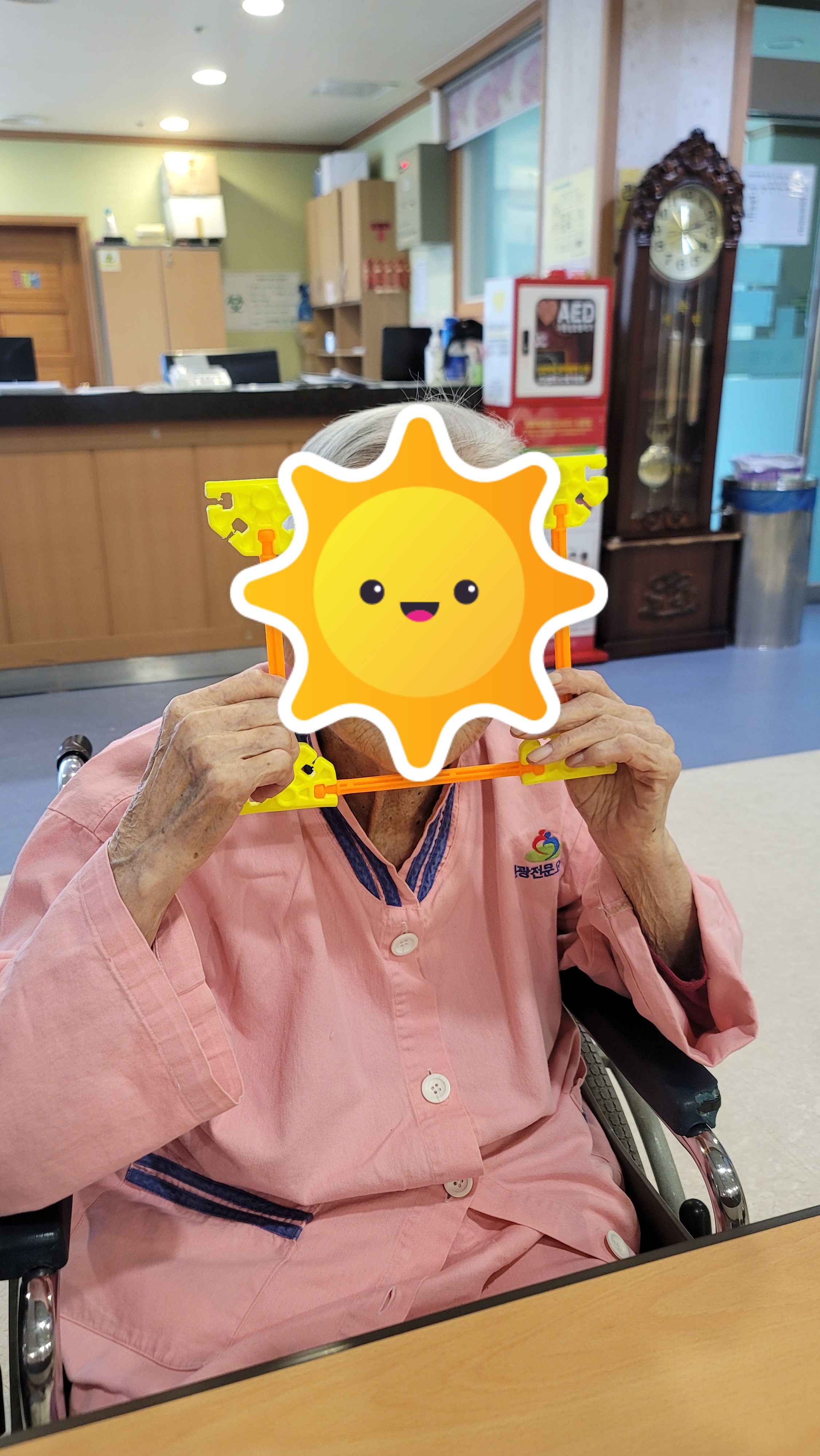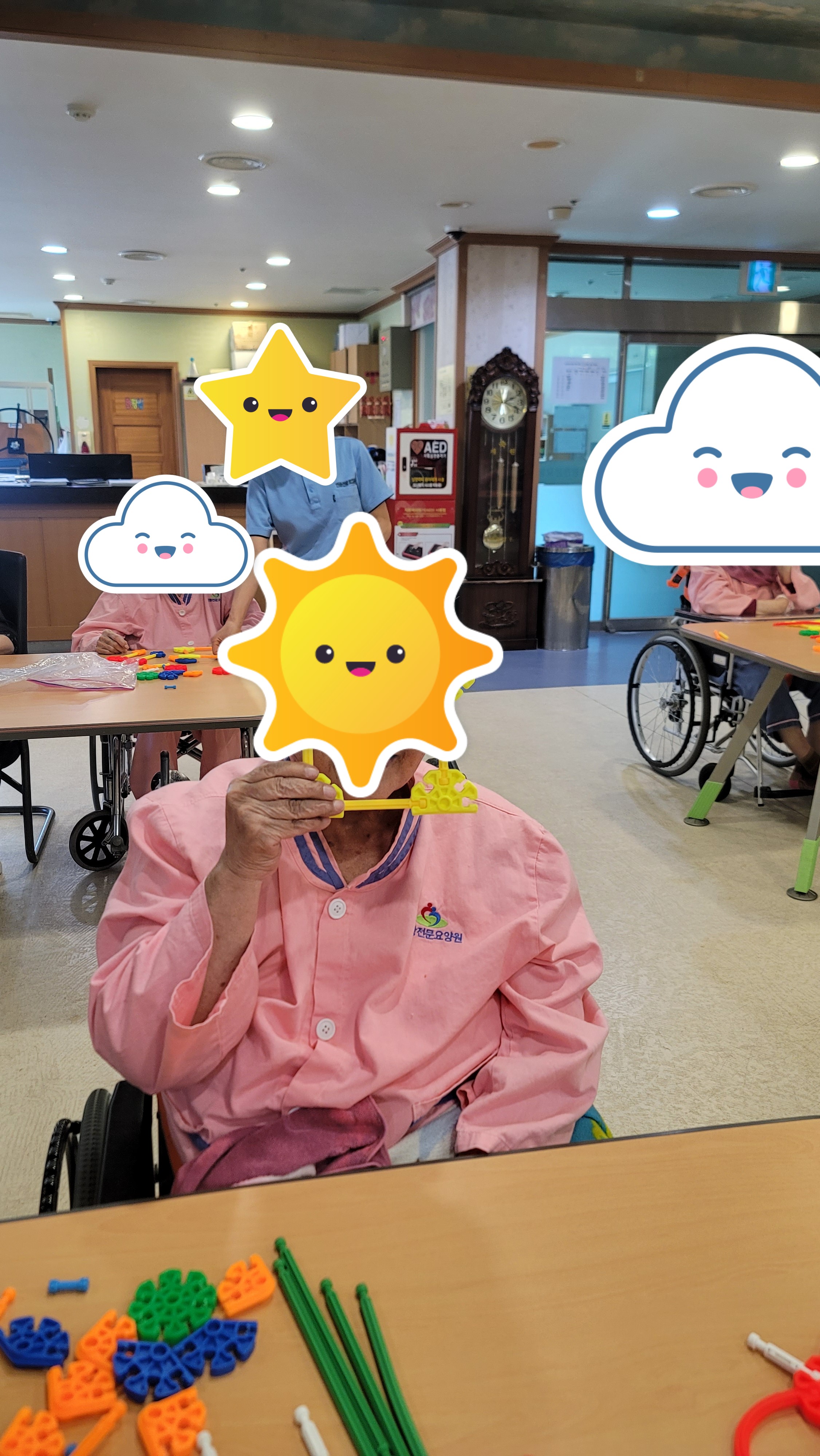 간단한 시니어 스트레칭과 음악체조를 한 다음 휘어지는 블럭을 이용해 꽃 하고 나비도 만들어 보고 눈도 달아주고 코도 달아주니 꼭 사람 같다고 어르신들 모두 한결 같이 같은 대답을 하셨으며, 다음에는 더 다양한 모양의 블럭을 이용하여 다방면의 모형을 만들어보자고 이야기 하셨습니다.