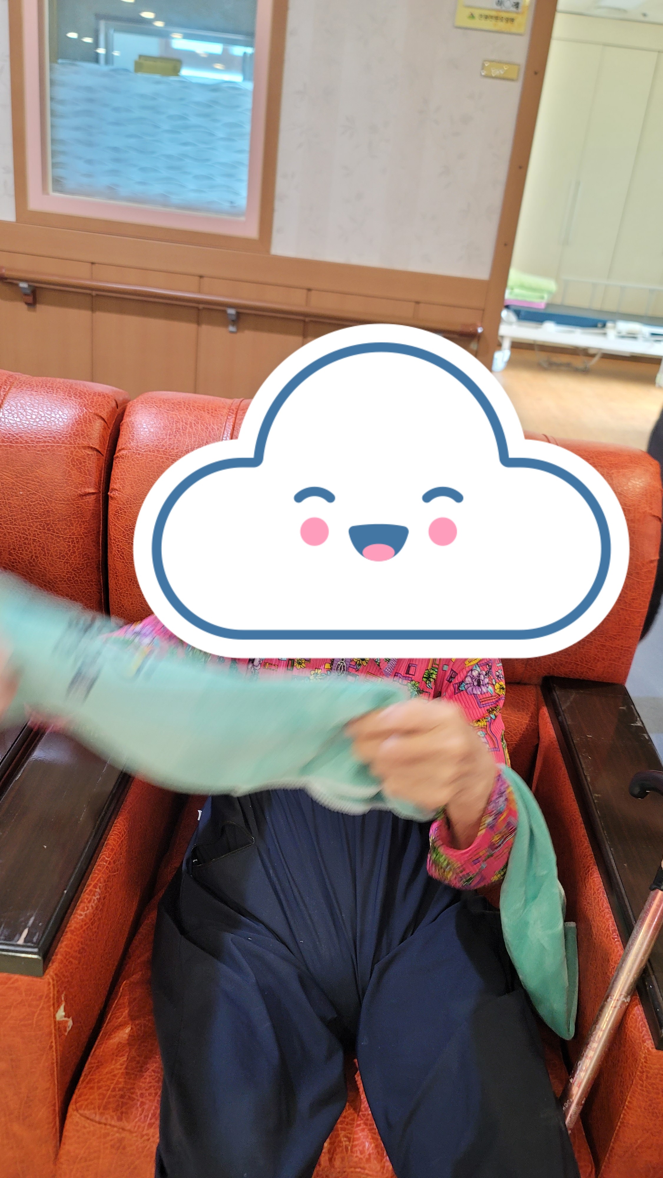 장소 : 요양원 2층 프로그램실 ★ 인원 : 어르신 22명 참석 ★ 내용 : 신체활동 프로그램 활동 맞춤형 프로그램 강사님이 오셔서 어르신들과 함께 신체 활동프로그램을 진행하였습니다. 간단한 시니어 스트레칭과 신나게 음악에 맞추어 건강 박수 및 근력 체조를 실시 한 다음, 캐스터네츠를 하나씩 배부 받은 다음 소리를 딱딱 내어 음악에 맞추어 신나게 놀아보았습니다.