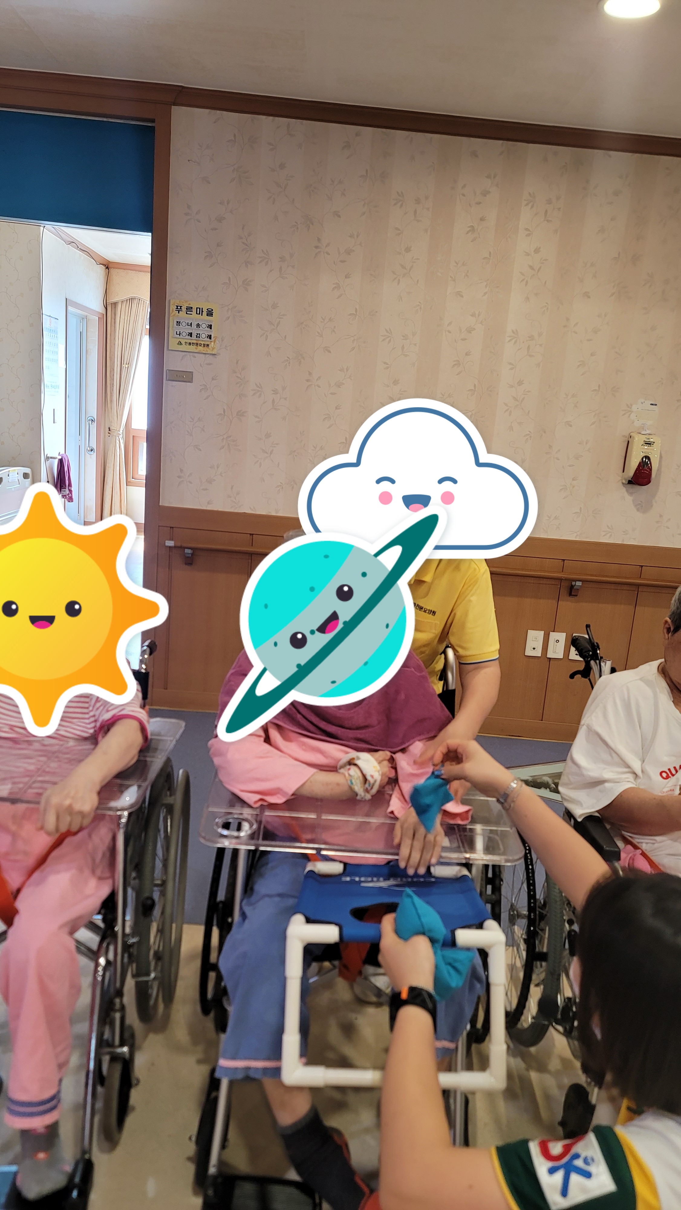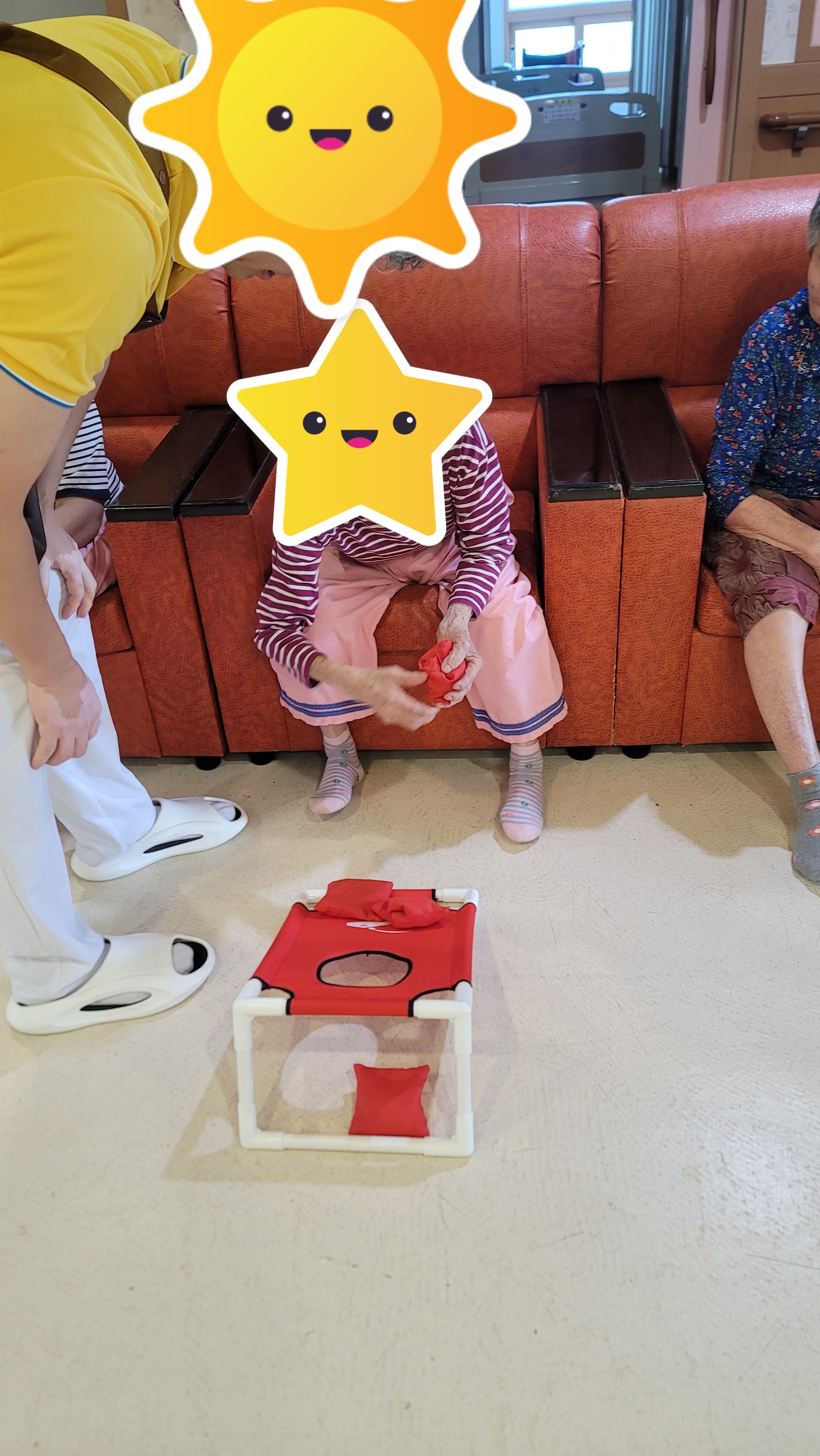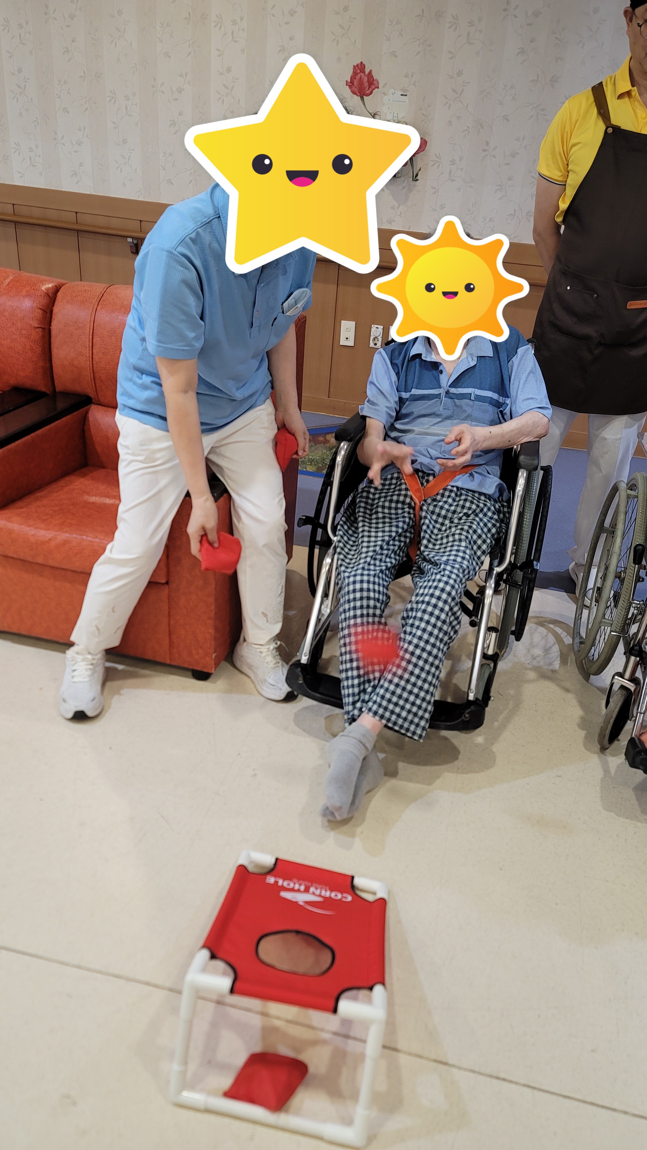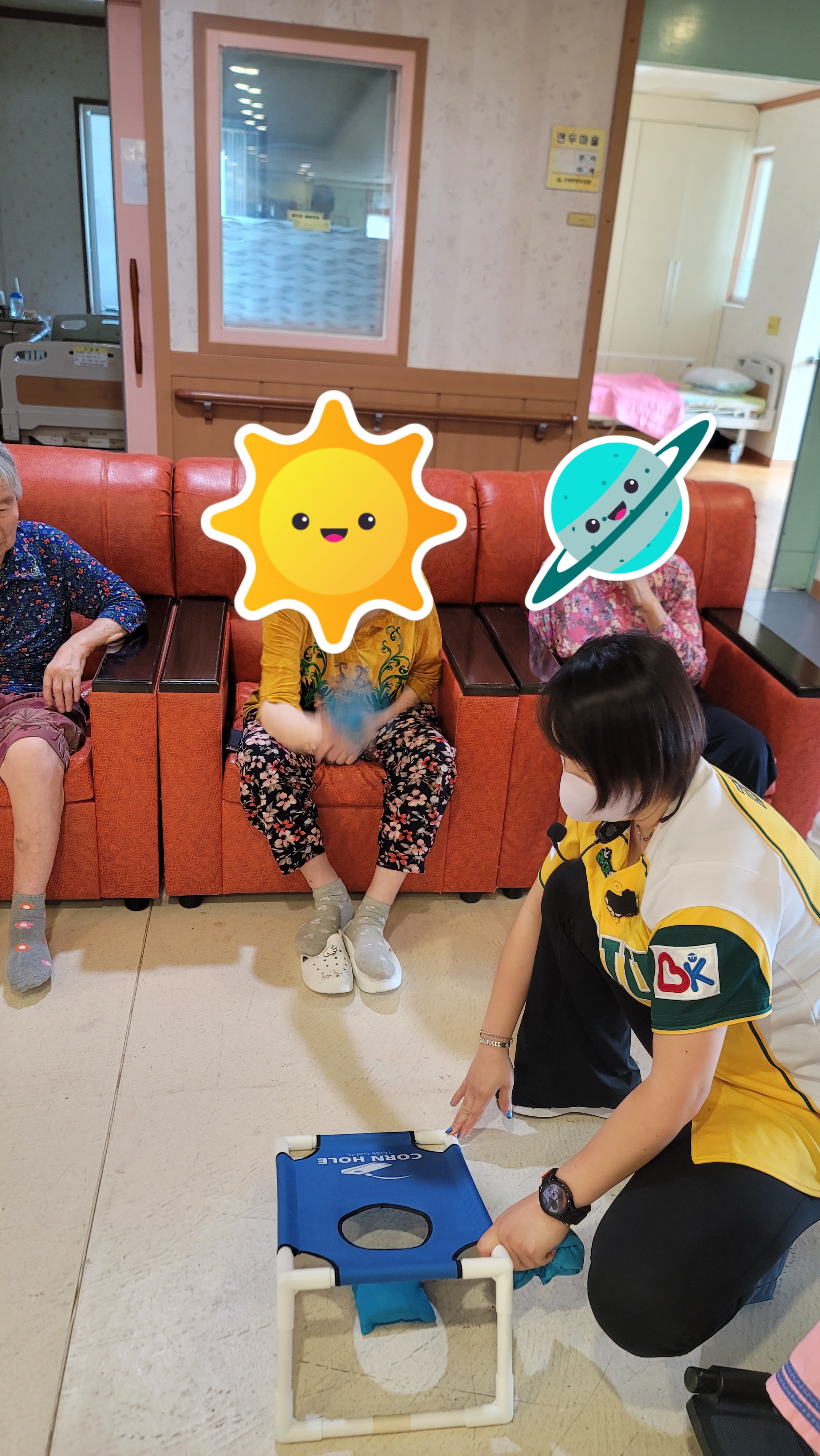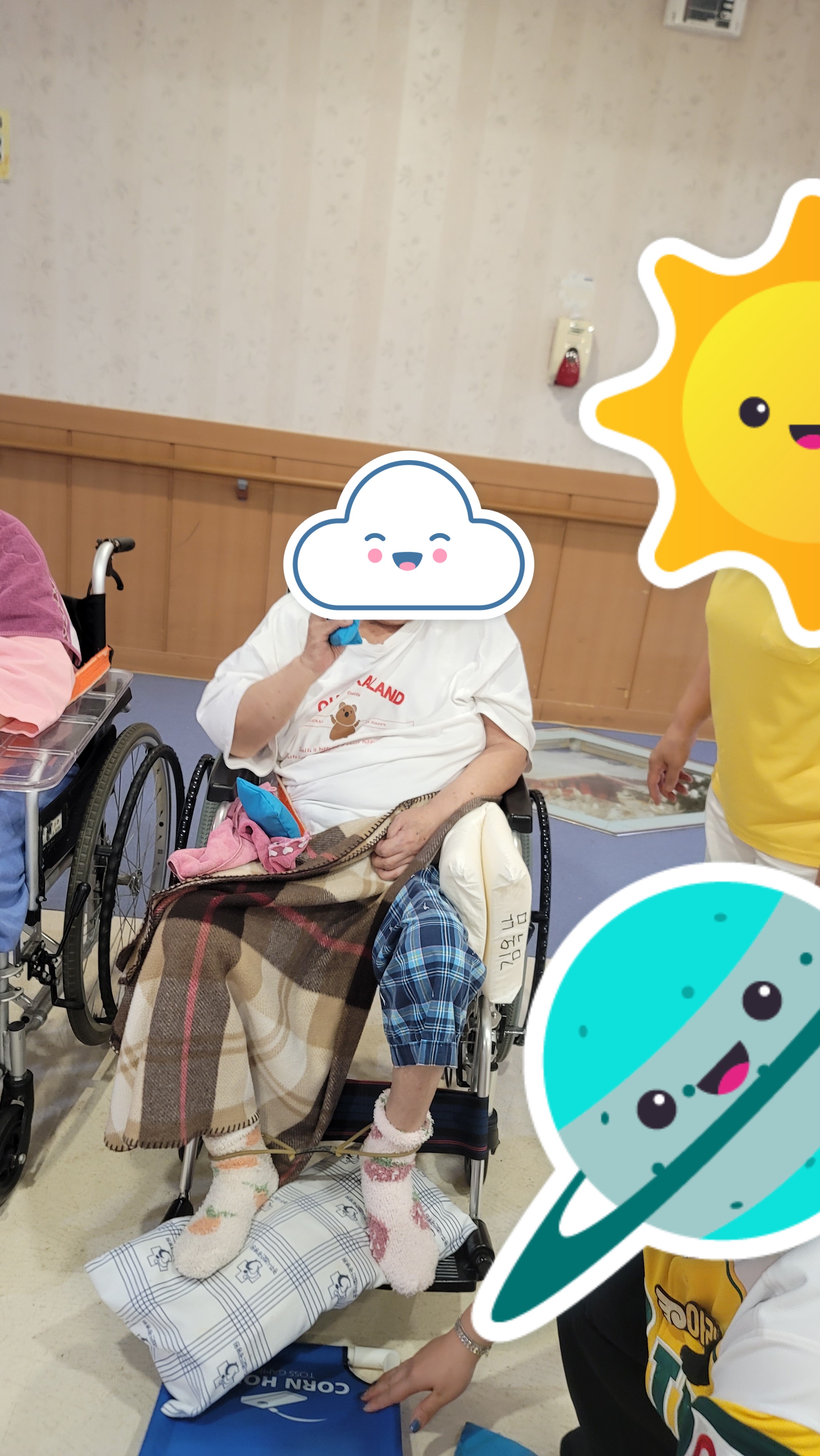 장소 : 요양원 2층 프로그램실 ★ 인원 : 어르신 22명 참석 ★ 내용 : 신체 활동 프로그램 활동 맞춤형 프로그램 강사님이 오셔서 어르신들과 함께 신체 활동프로그램을 진행하였습니다. 간단한 시니어 스트레칭과 탄력밴드 체조로 활기를 북돋은 다음, 콘 홀을 이용하여 미니 골프를 해보았습니다. 손으로 공을 던져 원형 가운데에 골인 시키는 게임이니 어르신들 모두 어려워 하지 않고 다들 쉽게 게임 방법을 이해하고 게임을 즐기셨습니다.